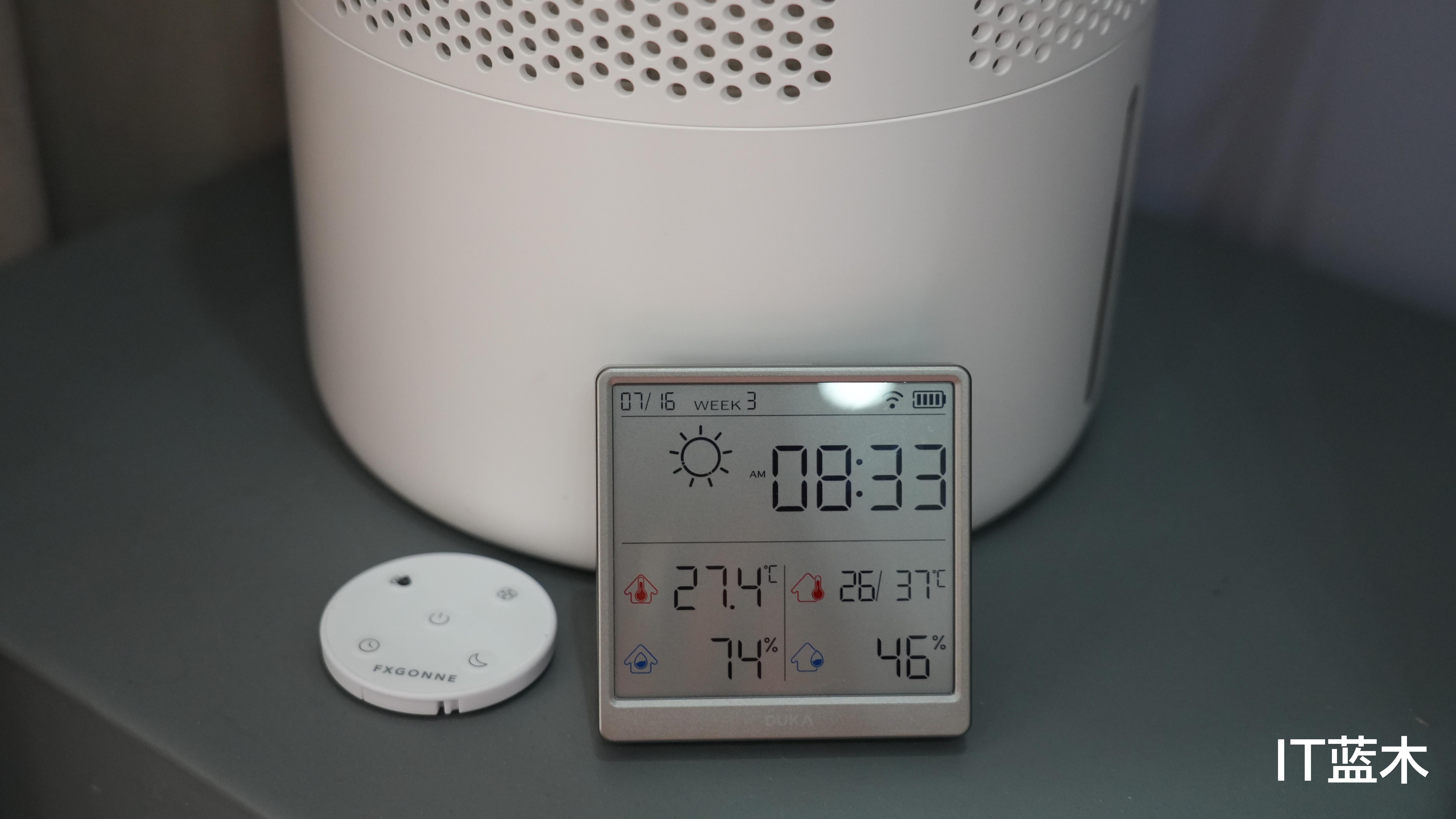 加湿均匀度:全屋无死角的湿润覆盖为测试加湿均匀度,我们将加湿器开启最大档位运行2小时,分别测量1米处、5米处及房间最远角落的湿度。结果显示,1米处湿度74%,5 米处73%,最远处的阳台角落71%,差值仅3%,远优于普通加湿器10%左右的常见差值。