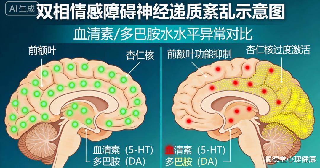 有人说“多陪他聊聊,安慰安慰就没事了”,这是对双相最大的误解。双相的核心是大脑生理功能异常,神经递质(血清素、多巴胺等)的分泌失衡是根本原因。就像高血压患者不能靠“劝血压降下来”治愈一样,单纯的心理疏导、情绪安慰,完全无法修复大脑的病理损伤,反而可能让患者觉得“没人理解我,我更没用了”,加重病情。