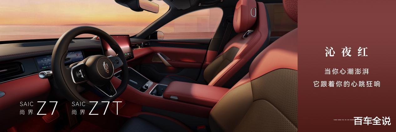内饰方面,尚界Z7、尚界Z7T拥有更年轻的空间设计,带来沁夜红、速影黄[4]、凝夜紫、闪金黑、缥云杏5款时尚配色,拼色设计,呈现出更加轻盈、悬浮且富有层次感的视觉效果,带来通透和舒展的空间感受。新车还配备全新一体式运动座椅,进一步营造运动氛围的同时,也能带来更好的支撑性和舒适性。