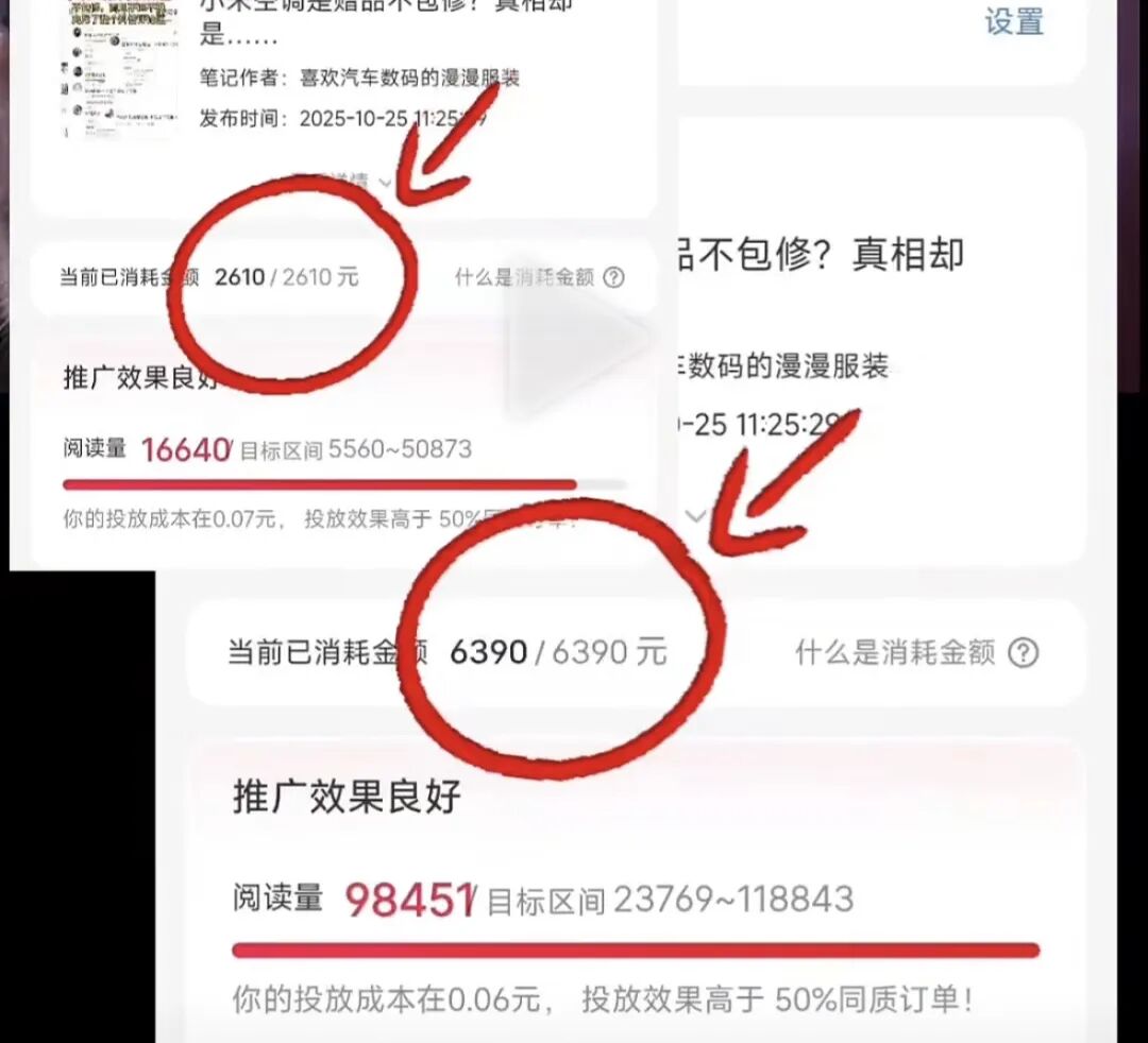 这还不算完,该作品达到了16000多的阅读后浏览量后,背后的陌生人可能觉得还没有达到预期的效果,于是又紧接着追加了6390元的投流,一共投了9000元,最终阅读量达到了将近10万。