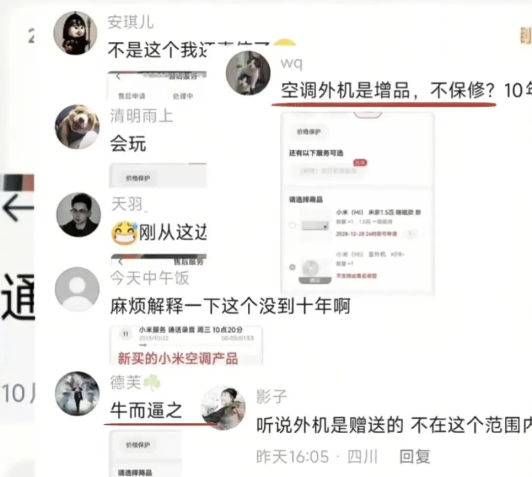 但事实却是,这个网友并不是真正的吐槽小米,而是在解释小米的空调外机显示是赠品这件事,并非又是在夸大宣传和营销,因为鸿蒙空调、格力空调、大金空调都是这样的,都显示外机为赠品,虽然显示为外机,但是依然包修。