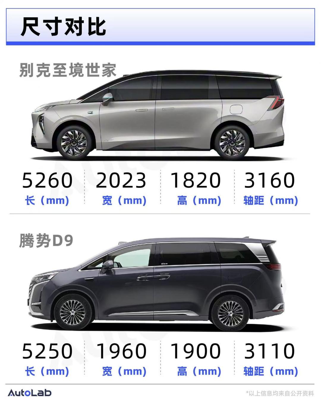 在尺寸方面,两台车同属中大型MPV,车长的相差仅为10mm,但在轴距方面,别克至境世家比腾势D9长了50mm,恰好这两台车我都体验过,就主观体感来说,世家的二排及三排空间表现确实会更好一些。