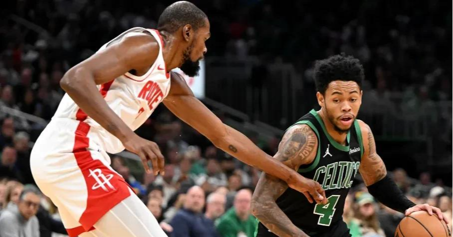 一是杜兰特宝刀未老,仍是顶级杀器。这场比赛再次证明,杜兰特依旧是联盟最顶级的得分手之一,完全能为火箭本赛季的征程立下汗马功劳。他的进攻效率高得惊人,11次出手就拿下26分,每次出手都像一把精准的手术刀,直插对手心脏。比赛中多次出现这样的场景:凯尔特人球员明明已经防到脸上,杜兰特依旧能靠着身高和手感轻松命中;面对两人包夹,他要么能找到突破路线,要么能造犯规走上罚球线,9罚8中的罚球命中率也展现出极强的稳定性。更难得的是,他在防守端也没松懈,2次抢断和1次盖帽体现出积极态度,尤其是第二节那次追身抢断,直接发动快攻帮助球队得分。
