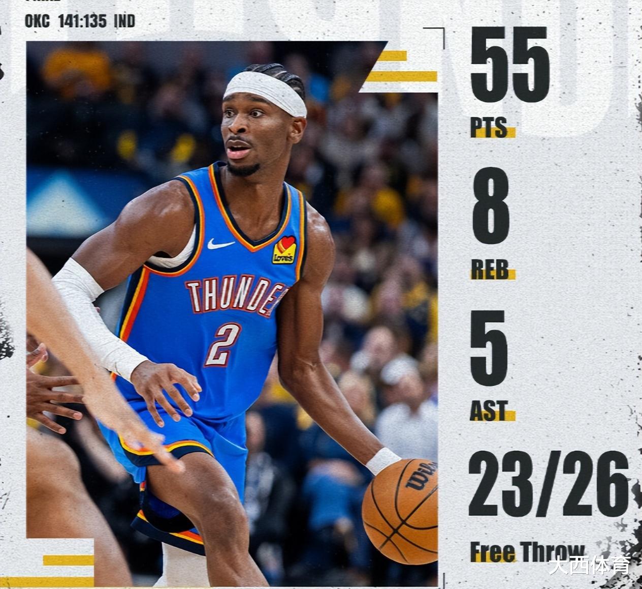 雷霆这边堪称多点开花,米切尔替补登场斩获 26 分,威金斯贡献 23 分 9 篮板,尤其是加时赛的两记三分成为胜负手。霍姆格伦与哈尔滕施泰因组成的内线双塔抢下 26 个篮板,为亚历山大的突破创造了充足空间。