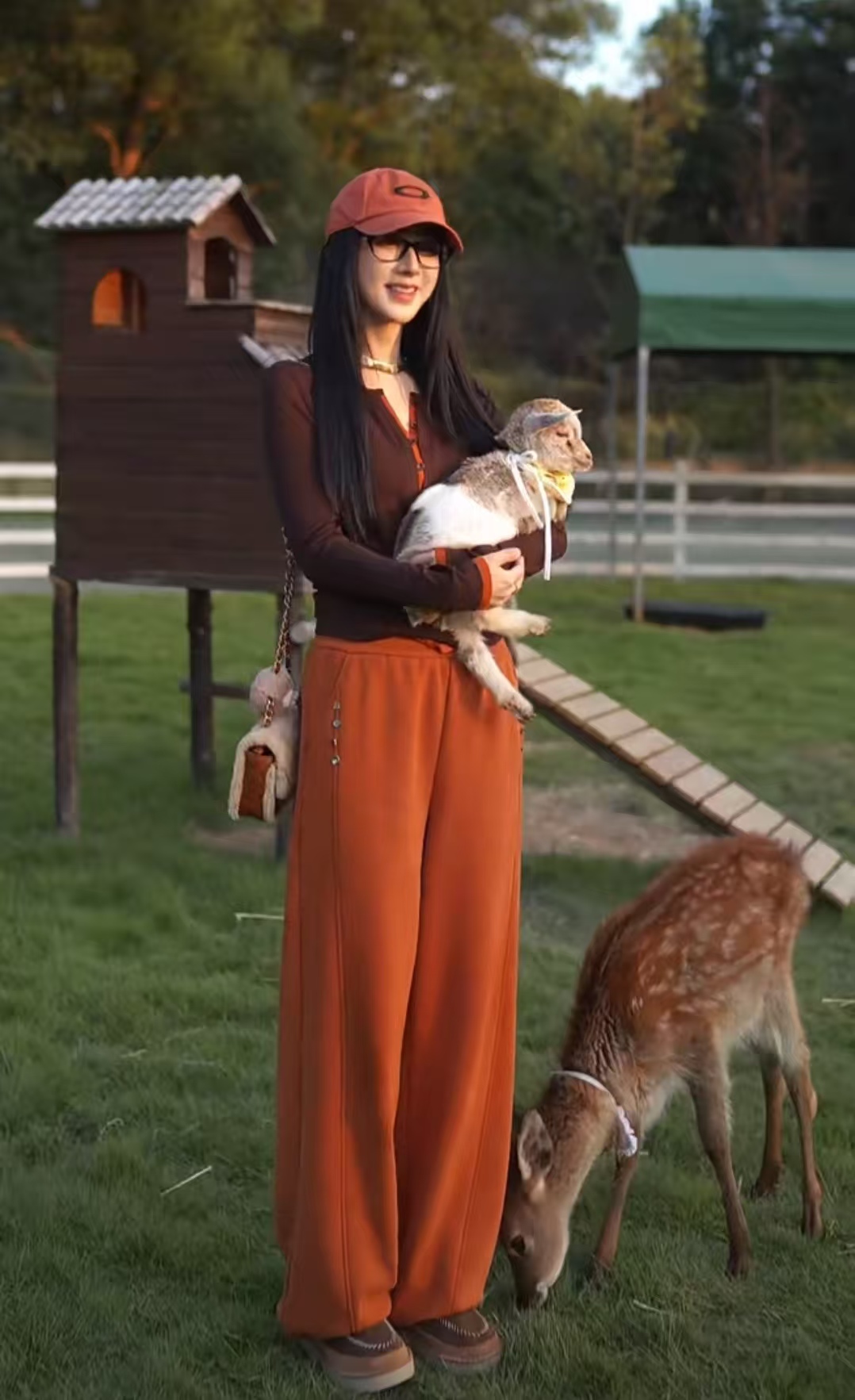 再来看薇娅与小羊的这张合影,一动一静、一张杨一沉稳、一活泼一淡然……构成了和谐的美学光影。