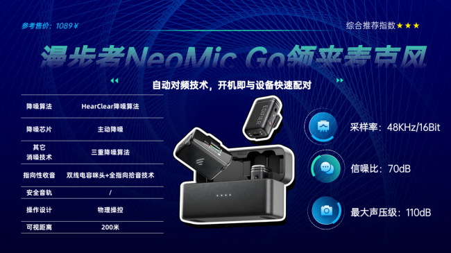 10.漫步者NeoMic Go领夹麦克风