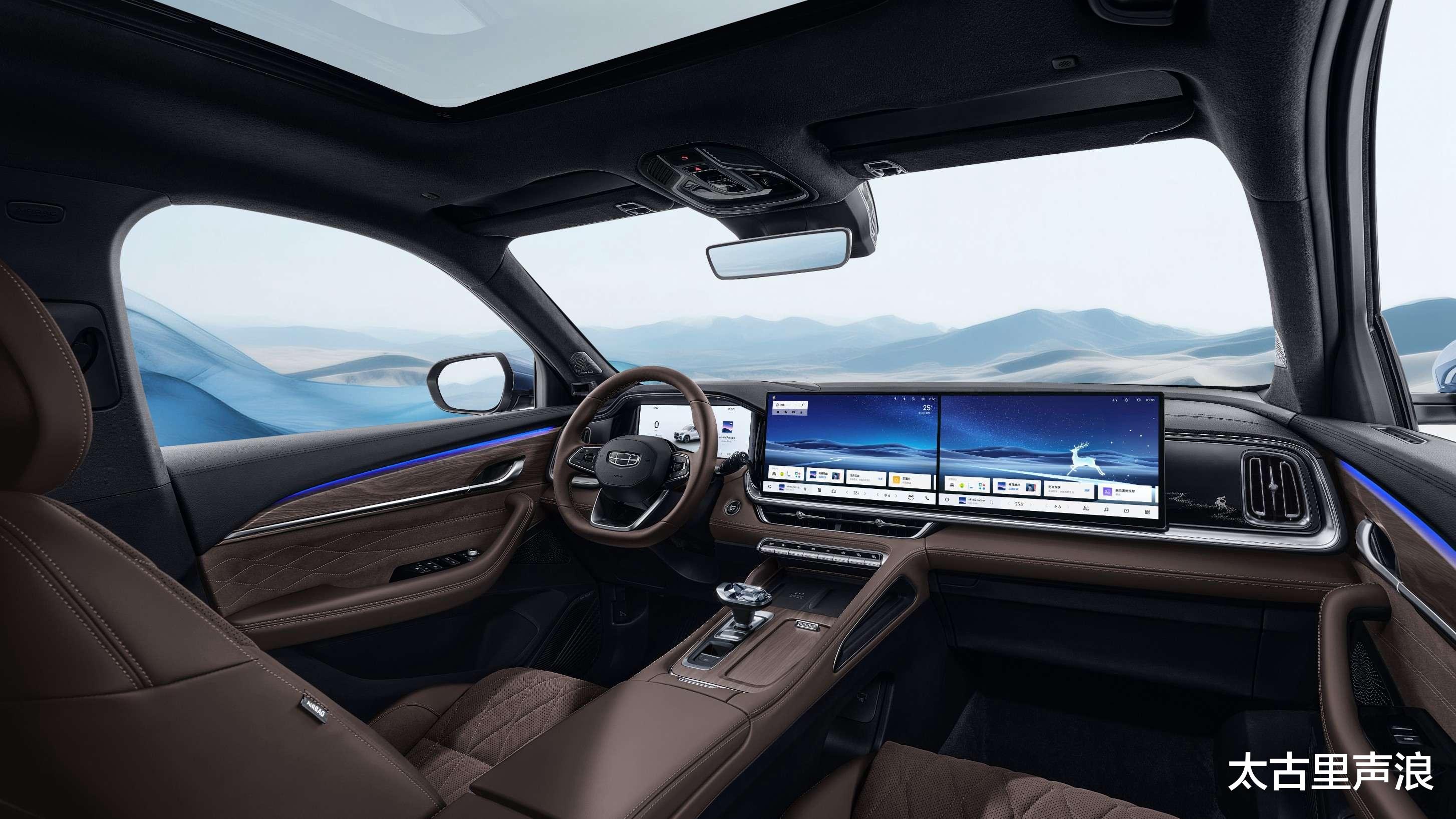 进入车内,新款星越L东方曜有三块屏,其中14.6英寸中控屏和14.6副驾驶屏采用联屏设计,液晶仪表位12.3英寸,抬头显示系统尺寸为25.6英寸。新款星瑞东方曜中控屏同样是14.6英寸,液晶仪表为10.23英寸。