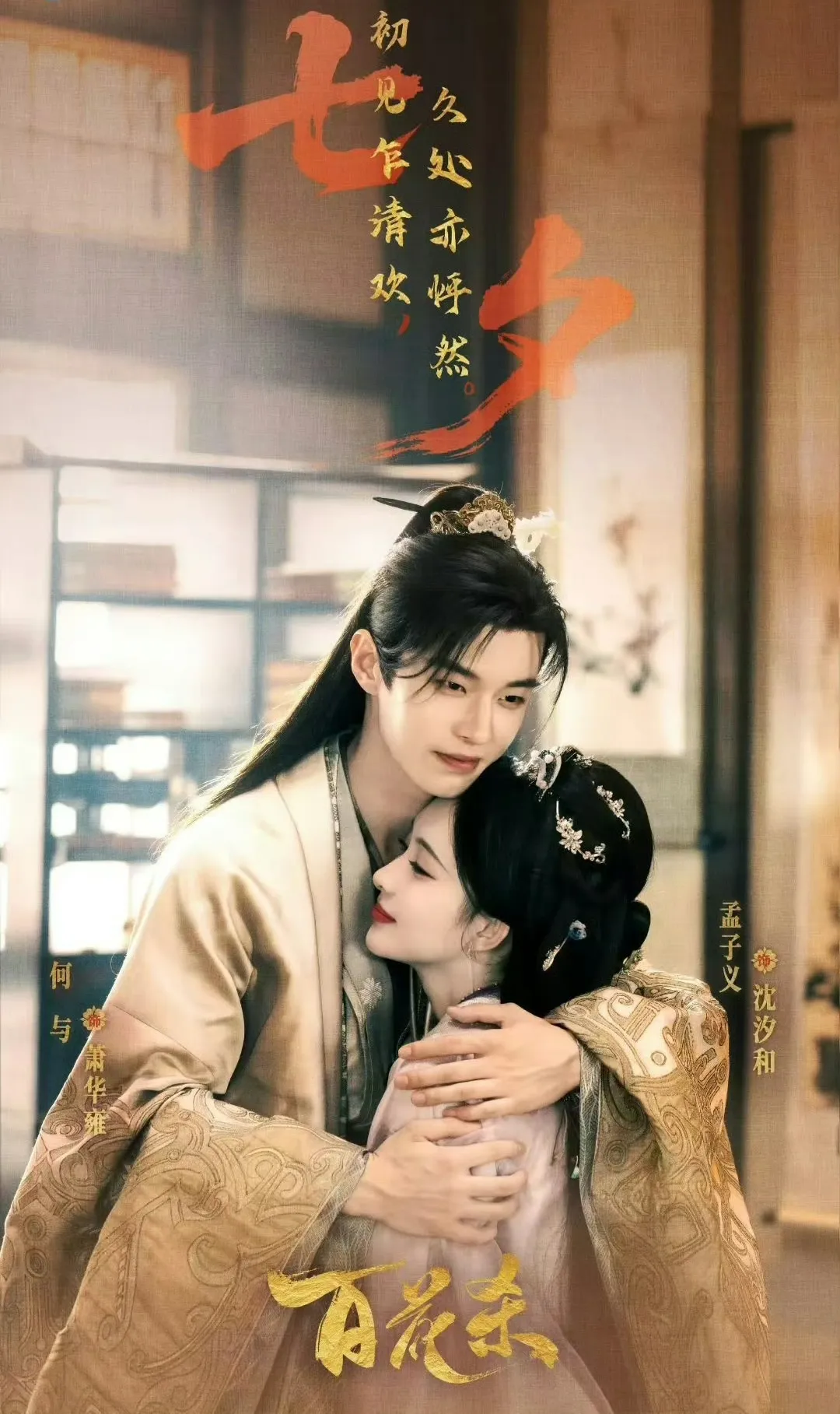 同样甜蜜的还有孟子义和何与主演的《百花杀》。海报里,何与将孟子义拥入怀中,脸上还挂着宠溺的笑,孟子义也是一脸幸福。甜蜜的氛围远比吻戏更打动人心。