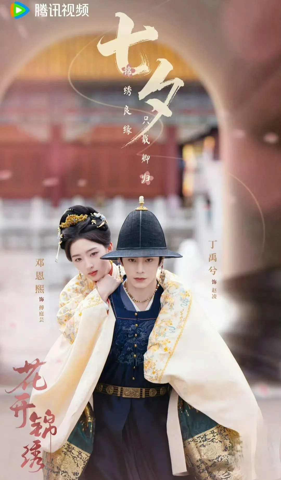 一起来看看这几部待播古装剧的七夕物料:丁禹兮和邓恩熙主演的《花开锦绣》放出的七夕物料很是唯美。海报里,丁禹兮背着邓恩熙,看起来幸福感拉满。