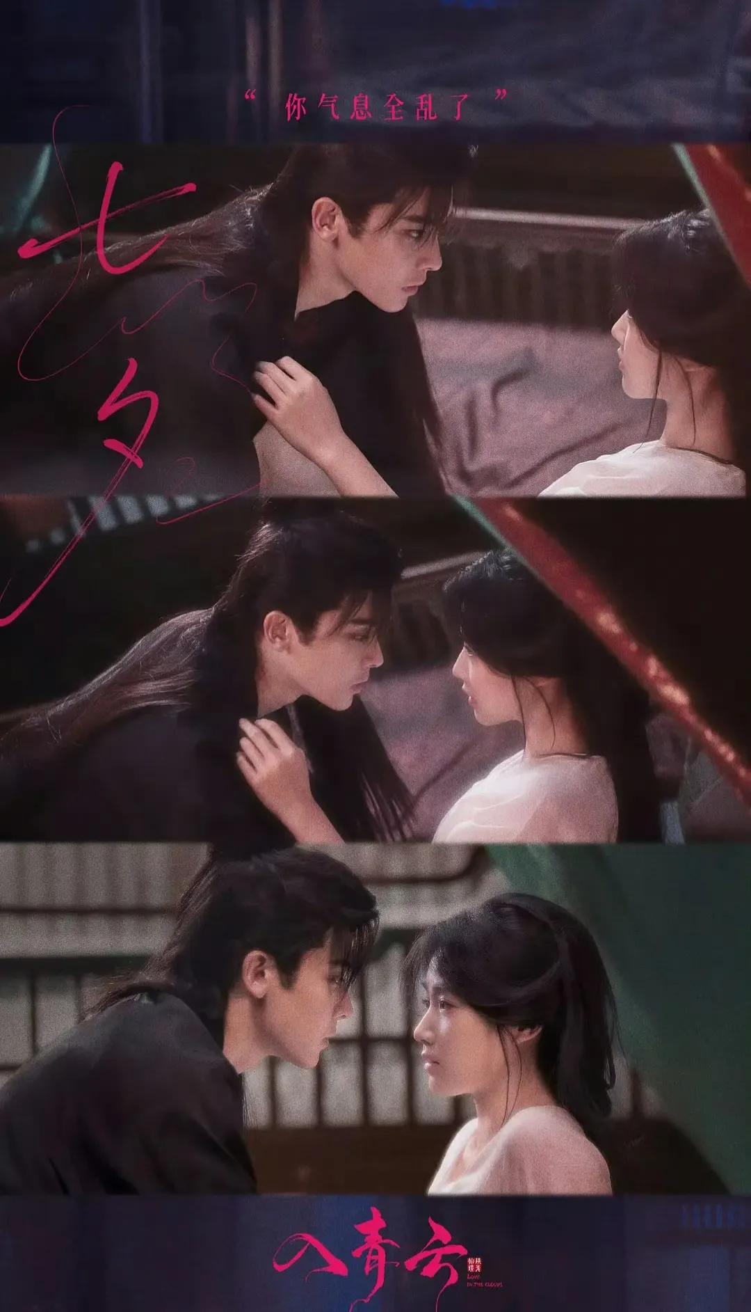 侯明昊的另一部剧七夕物料就好很多。他和卢昱晓主演的《入青云》七夕海报看起来就很欲,半推半就再慢慢靠近,一句“你气息全乱了”更是又甜又欲,忍不住期待他俩剧里的表现了。