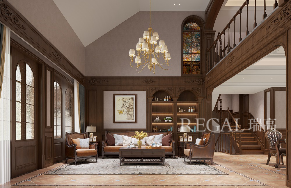 设计说明:美式风格在室内装饰领域独树一帜,它承载着丰富的文化内涵与历史底蕴,为家居空间带来独特的魅力与舒适感。