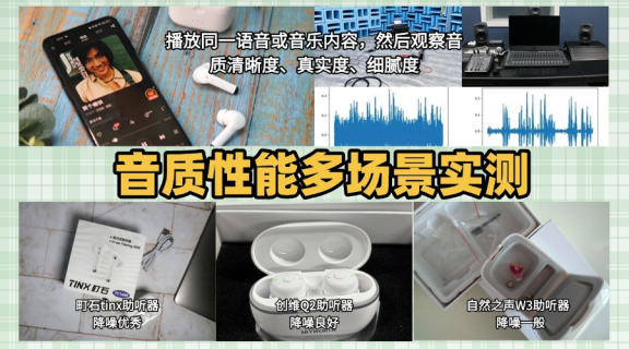 降噪对助听器来说非常关键。只有把噪音控制好,才能更好地聚焦语音。降噪效果主要由通道处理技术、发声单元性能以及是否具备移频技术共同决定。为了更直观了解差异,接下来我们看看几款产品的降噪表现。