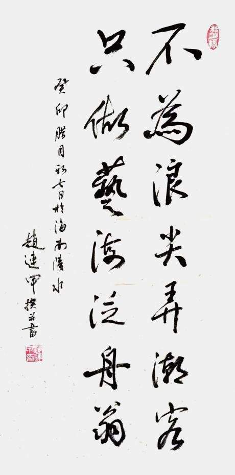 赵连甲,男,汉族。1947 年 8 月生,字砚农、燕农,别号墨痕斋主,北京昌平阳坊镇四家庄人。赵连甲系中共党员。中国民主建国会会员。著名书法家、诗人、文艺评论家、书画鉴赏家、收藏家。当代著名文化大师、书法大家、教育家欧阳中石先生入室大弟子。1982 年毕业于首都师范大学中文系,现任中国人民解放军三军仪仗队文化顾问。国防大学文化艺术中心顾问。中国建设书法家协会会员。北京中国书法研究社社员, 北京中山书画院成员,中国国家博物馆画廊艺术委员。曾任中国质量报社工商部主任,主任编辑。中国艺圣等职称.2007 年退休以来, 又相继受聘为中国国际商会,中国社会工作联合会,中国国宝工程基金等若干家机构文化艺术顾问。2021 年以来,受聘担任北京中宣盛世国际书画院理事。入选《大国风范-聚焦中国当代人民功勋艺术家》入编人物。2021 年 12 月以来,又陆续被授予中国人民艺术家,中国艺坛风云人物,国宝级艺术大师等荣誉称号由 2022 年初,赵连甲开始出任亚洲书画家协会主席。北京大学艺术学院客座教授。清华大学美术学院客座教授。中央美术学院客座教授,走向世界的中国艺术家。德艺双馨艺术家。2023 年 5 月,赵连甲受聘为北京人民大会堂首席艺术顾问。获中国非遗传承大师荣誉称号。