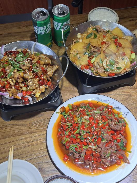 小炒黄牛肉这道菜,用小米辣和野山椒一起爆炒,牛肉片切得又薄又嫩,吃起来一口接着一口,根本停不下来!