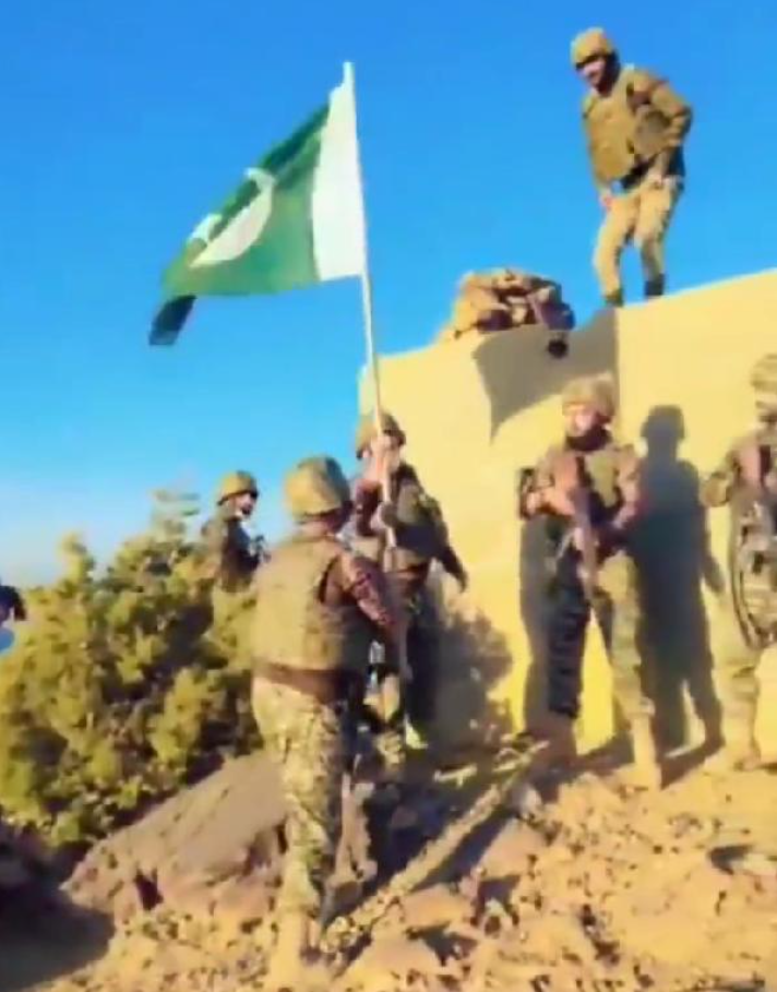 从无人机传回的实时画面能清晰看到:枭龙战机的轰炸精度达到米级。在阿富汗帕克蒂亚省的Jandosar哨所,导弹直接击穿塔利班的混凝土碉堡顶,守军来不及转移就弃哨逃窜,留下3挺PKM机枪和20余发火箭弹。巴军地面部队随后徒步突进,士兵踩着碎石爬上哨所制高点,将巴基斯坦国旗插在碉堡残骸上,镜头里还能看到墙面上未清理的塔利班标语被弹孔击穿。