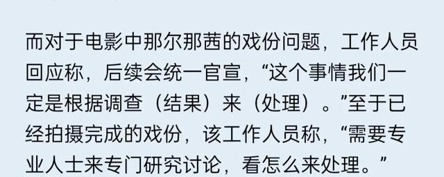关于那尔那茜的戏份,工作人员称会根据调查结果来处理。