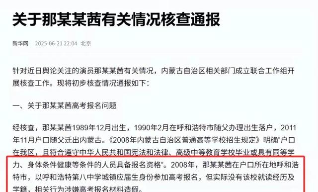 1,那尔那茜在北京上的高中却在内蒙古考试,涉嫌高考资料造假。