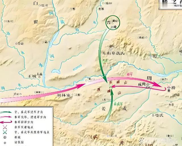 楚国战败后,晋文公对郑国的三心二意十分不满,联合秦国攻打郑国。郑国派出烛之武向秦穆公陈述了郑国亡,却便宜晋国,让秦国退兵,不过秦穆公留下三位大臣留着日后占领郑国。晋文公得知秦国退兵,也退走。过了两年,晋文公去世,晋国由晋文公儿子晋襄公继位,这时安插在郑国的棋子传来可以占领郑国的消息。秦穆公大喜,不顾百里奚和蹇叔的劝阻,执意攻打郑国,秦国浩浩荡荡派遣大军出发,不过先被郑国察觉,秦国的偷袭不容易成功,秦穆公就撤军回国,途中灭亡了滑国。晋襄公得知秦国灭亡晋国的属国滑国,还是晋文公还没下葬之时,认为是秦国对晋国的挑衅,派大军在秦军的必经之路设下伏军,秦国大败,三位将军被俘。晋襄公夫人是秦穆公女儿,在她的劝说下,晋襄公放三位将军回到秦国。