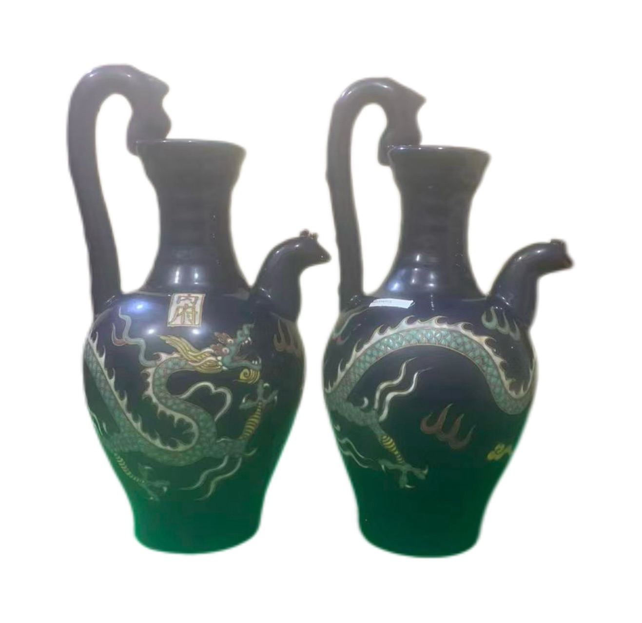 (三)“内府” 款识:宫廷用器的身份标识这对鸡头壶的纹饰与釉色,是元代文化融合的生动体现,彩釉龙纹的运用,既展现了中原文化的传统,又融入了草原文化的元素。