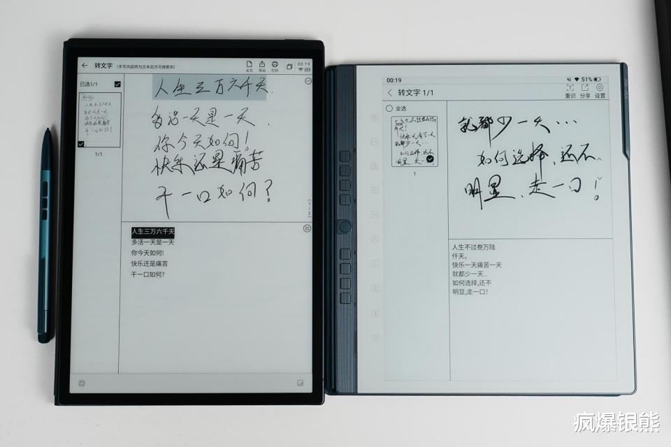 汉王N10 Pro二代和科大讯飞X3 Pro都支持手写转可编辑文本功能。在识别准确率方面,如果手写的文字比较标准二者识别都很优秀。如果字体写的和我一样潦草,那实测汉王在文字识别表现上稍微好一些,但是有时候字符会识别错误,科大讯飞虽然有识别错误字体的时候,但字符没见错过。(防杠声明:汉王也有识别错误的时候,只是准确率稍高,这点强调下)。