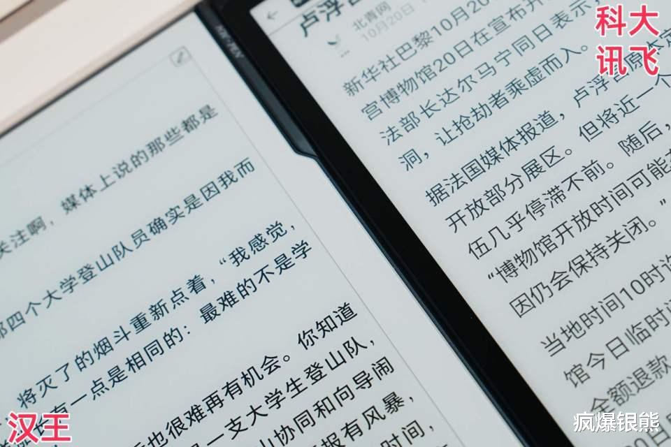 漫画/图片显示效果对比(左侧汉王对比度更高,图片更显清晰,右侧科大讯飞对比度不足)