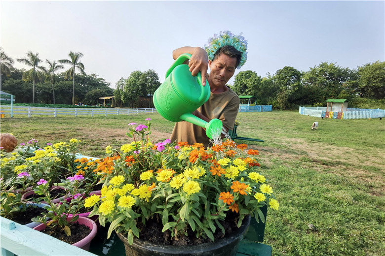 连日来,在佛山市卡玛缤纷花世界负责园艺工作的曾维生很纠结,作为一个上了年纪的男工人,园区竟然要求每天要像穿工衣戴工牌一要,头上戴花上班。对于这个规定,他百思不得其解,头上戴花,现在已经罕见了,男人头上戴花更会让人感觉是外星人。但是公司有规定,他也只好接受。其实,这几天卡玛旅游部门许多员工都像曾维生那样,心里纠结头上戴花一事。