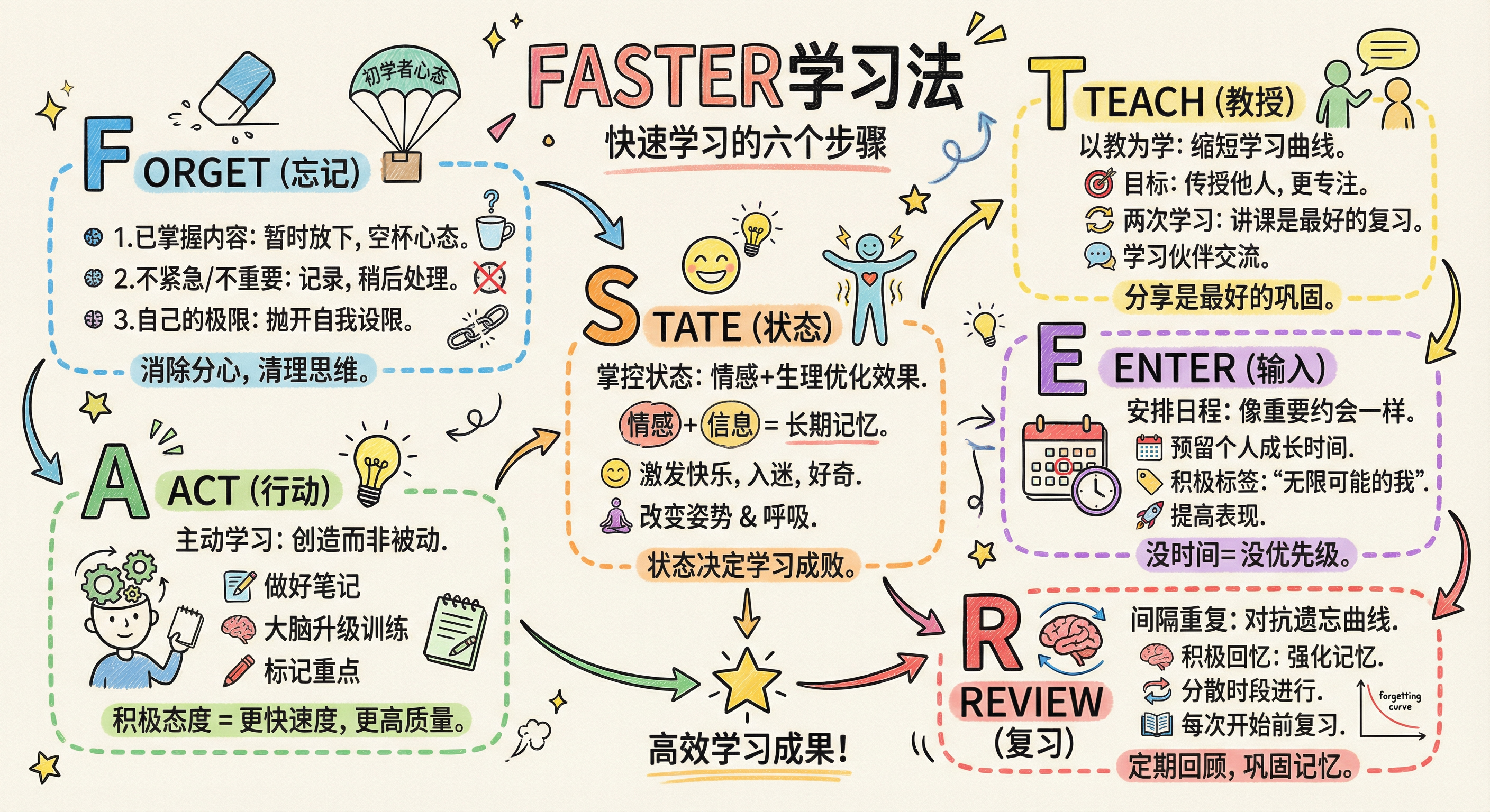3. 想要学得更快,你必须先学会“忘记”这是《无限可能》中高效学习法FASTER的核心精髓之一。FASTER学习法的第一个字母F,就代表“Forget (忘记)”。