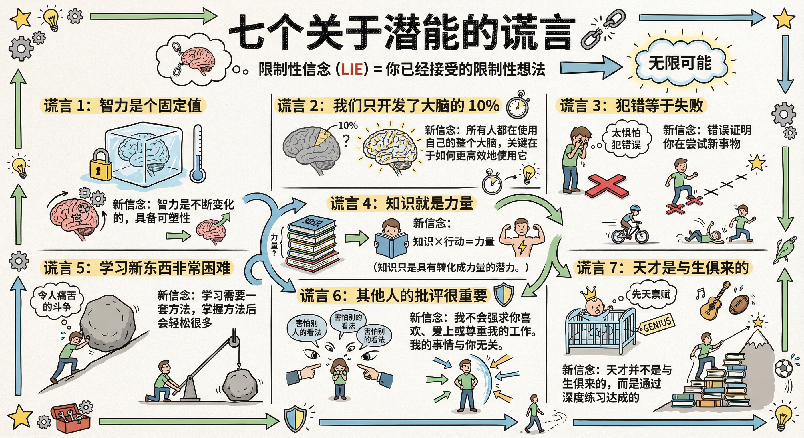 2. 知识本身不是力量(至少不完全是)“知识就是力量”这句格言几乎人尽皆知,但吉姆·奎克在书中第六章列出的“七个关于潜能的谎言”中,明确将其列为“谎言4”。