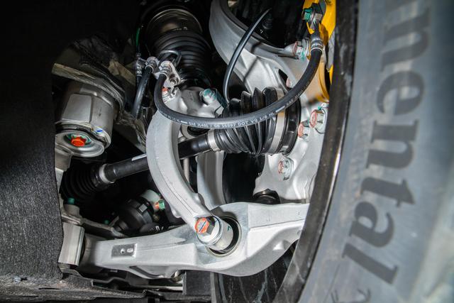 动力与制动的调校十分舒适,没有性能车那种突兀的冲劲,却能满足日常所有用车需求。起步时动力输出平顺,市区跟车不会出现窜动现象;高速行驶时需要超车,深踩油门就能感受到充沛的动力储备,响应及时,超车过程干脆利落,无需长时间跟车并行,驾驶更有底气。搭配的碳陶制动盘和前六活塞定钳,刹车手感线性不生硬,轻踩就能获得稳定的制动力,急刹时车身晃动幅度小,无论是市区拥堵路段跟车,还是高速减速,踩刹车时都能让人倍感踏实。