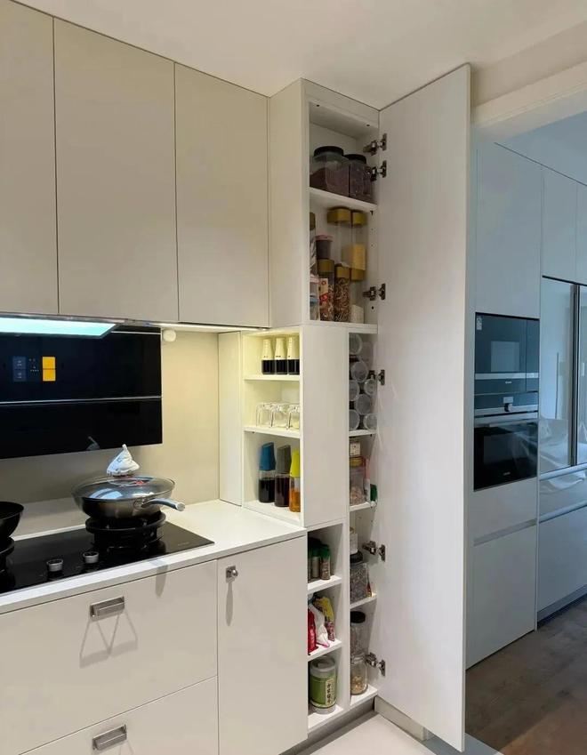 这样的设计,可以说是一举多得的好设计,就在挑选冰箱时一定要注意,得选“真零嵌入冰箱”才行。