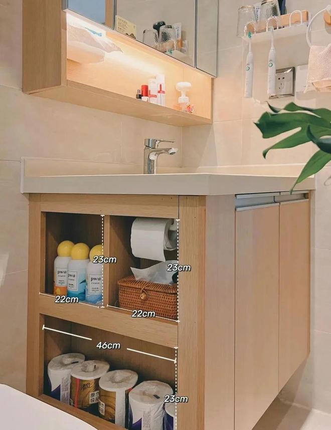 这不,已婚的女生就在定制浴室柜时,将靠近马桶那边留出15cm做侧边柜。
