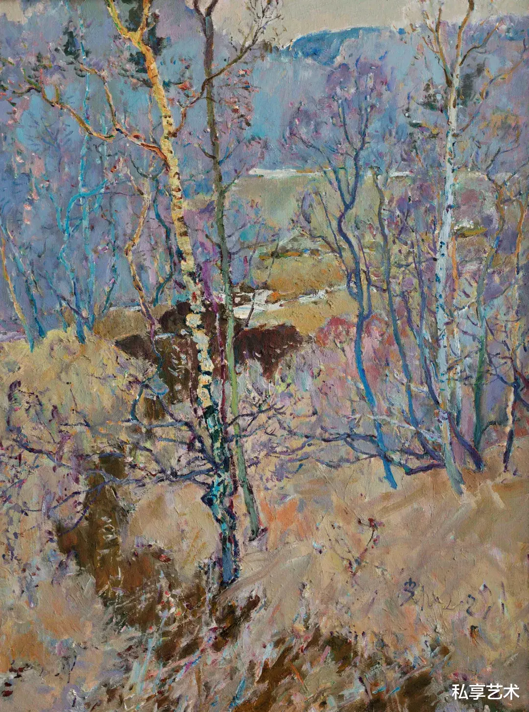 在中国油画的发展与创作历程中,在二十一世纪的今天,郑光旭的作品呈现出比较成熟的状态。他不仅有效继承了俄罗斯现实主义与写意表现的创作手法,也在作品中展现着中国的风土人情、自然风貌;对专业规律与理论的探索也体现出他在创作之路上的成熟与人文研究的积淀。在使用欧洲艺术形式语言的同时,深切的反映出东方的精神与生命理想的独特味道。