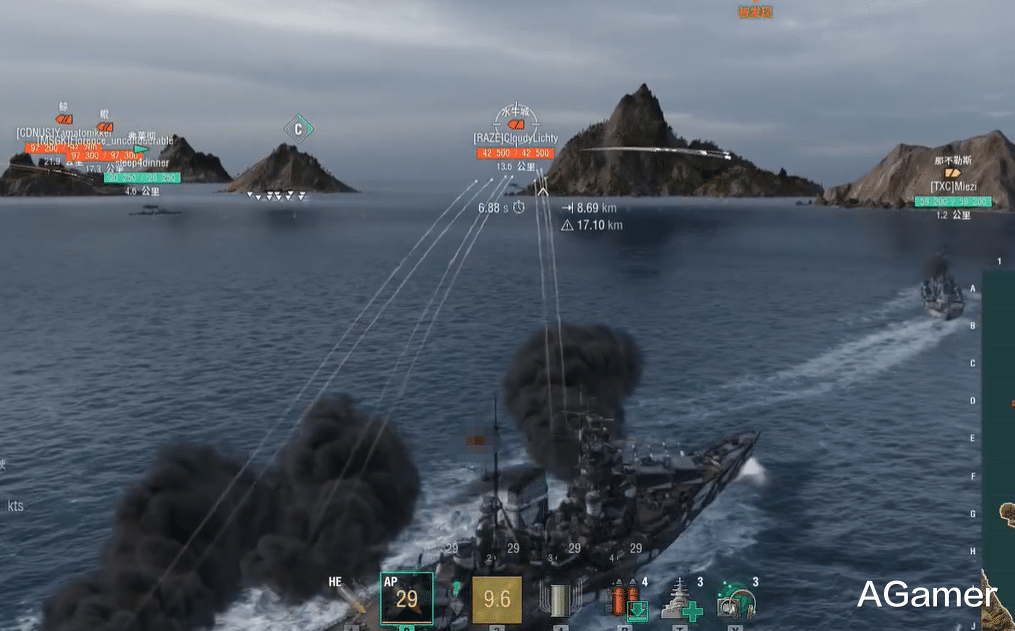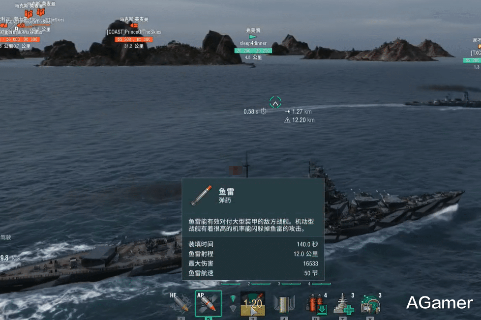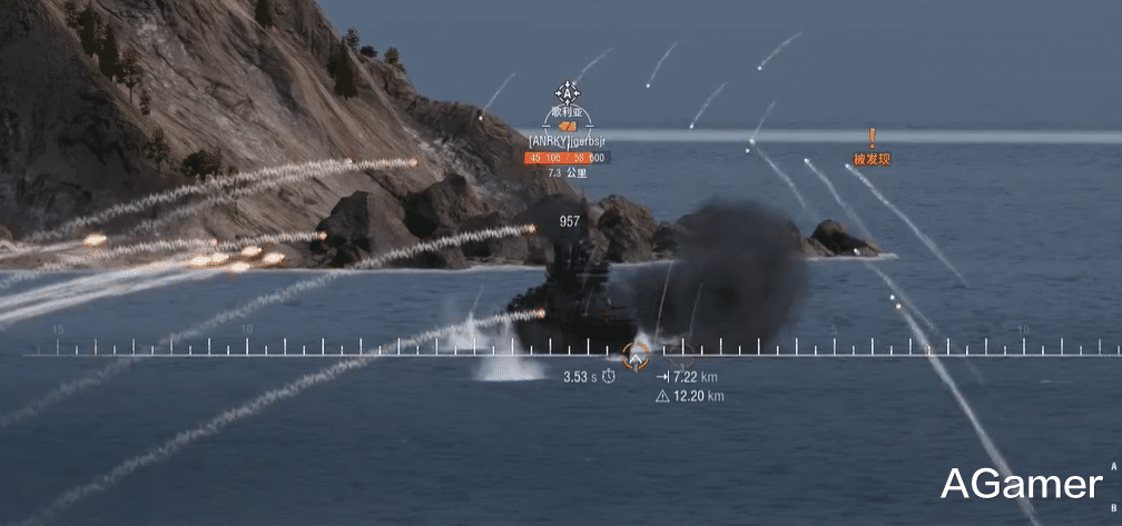 除了副炮,它还搭载4座双联装406mm主炮,虽然这炮的射速高达30秒,散布和精度也不算好,但胜在能够360度转炮,配合16发鱼雷12KM射程的鱼雷,不管缠斗还是拖刀都有一战之力。