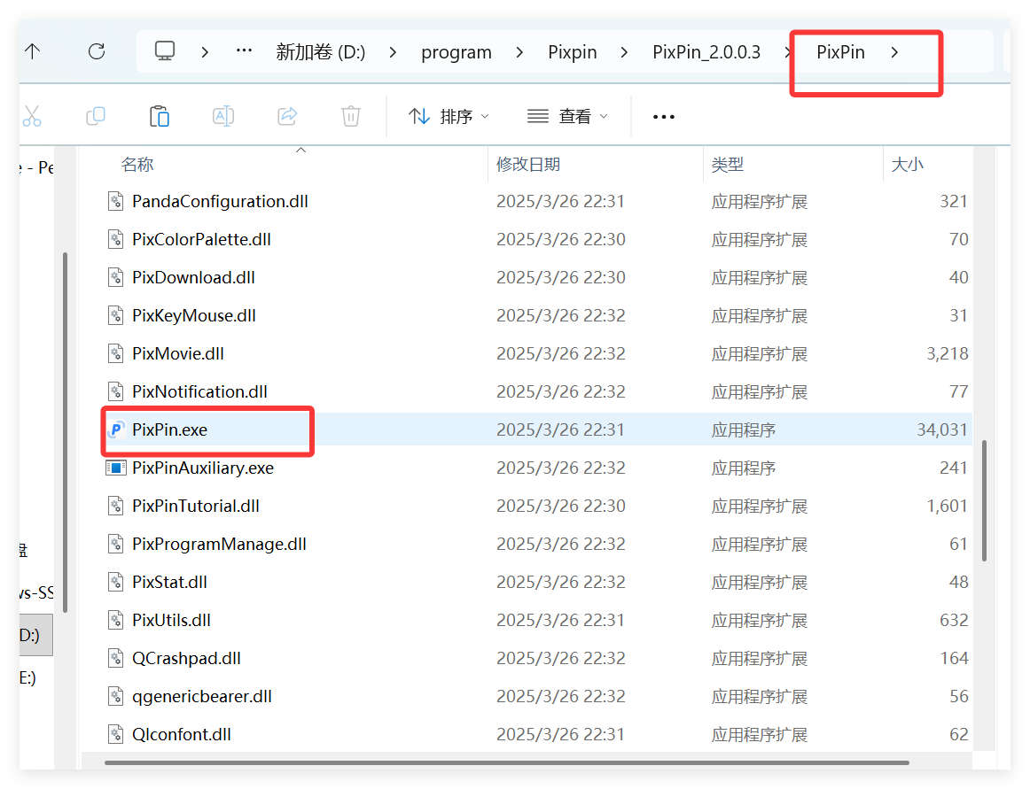 接着找到“pixpin.exe”文件: