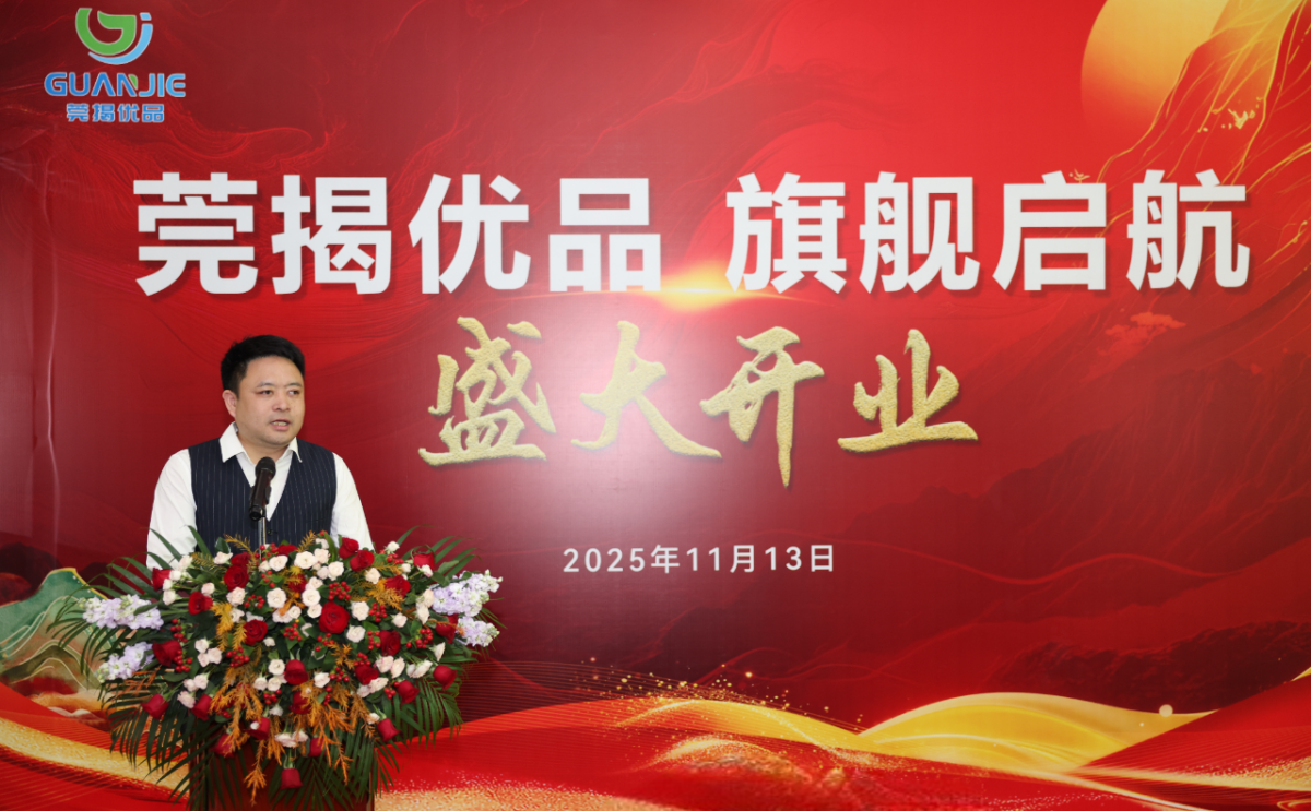 11月13日上午,“莞揭优品”旗舰店在东莞市松山湖莞揭创新中心1楼隆重举行开业仪式。旗舰店作为莞揭协作的重要创新实践载体,以“线下仪式庄重感+线上直播互动性”为核心模式,同步举行线下典礼与线上全程直播活动。广东莞揭实业投资发展有限公司董事长陈汉昌出席剪彩仪式并致辞,运营团队与供应商代表,共同见证莞揭两地“双向流通、互利共赢”的合作成果。