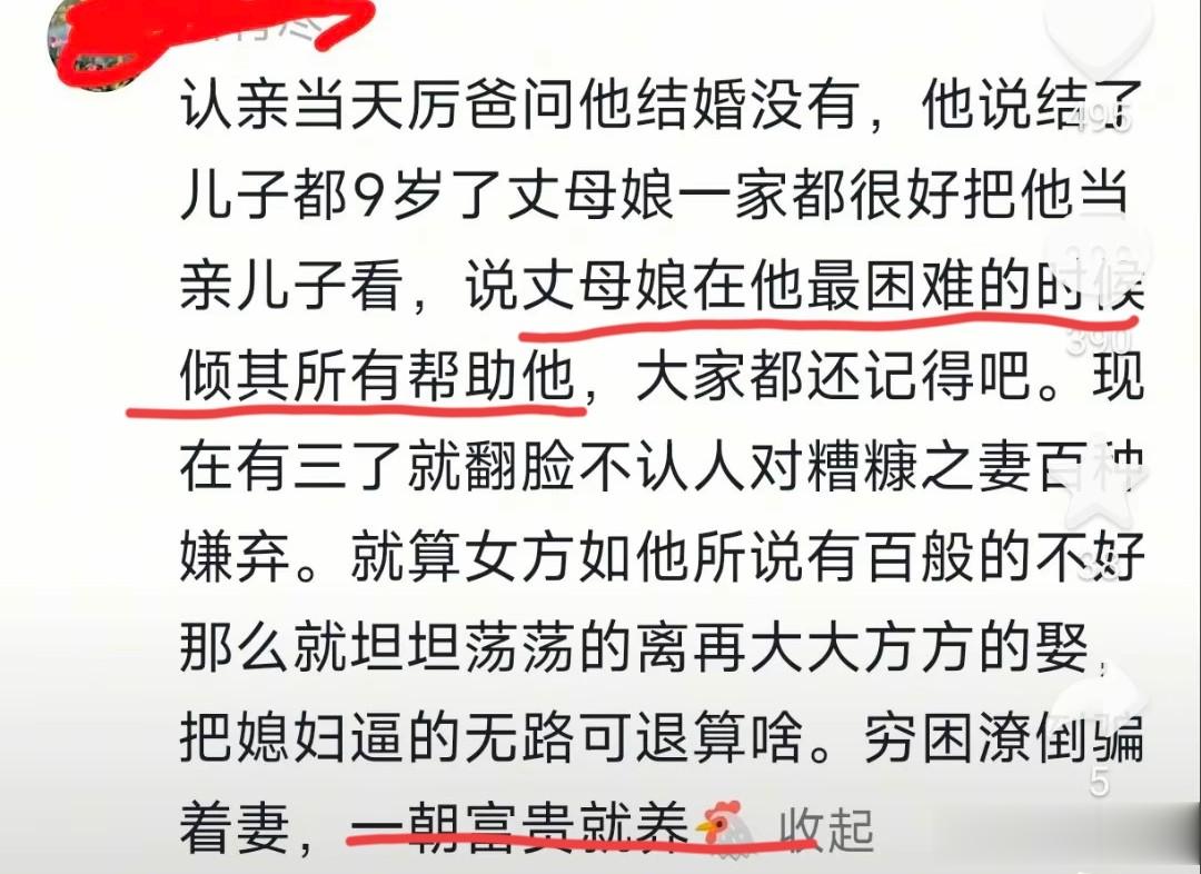 对于林丽与厉怀远的矛盾和纷争,有人支持林丽,说厉怀远就是陈世美,没米的时候妻子啥都好,刚认亲的时候厉爸问他结婚了吗?他回答结婚了也有孩子了,丈母娘和妻子都对他非常好,妻子坐月子时没钱,只能吃白米粥,因为没有钱买八宝粥。