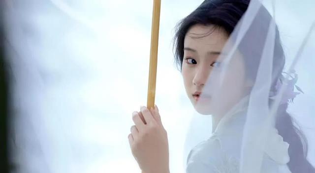 她穿了一件白色的纱衣,衣服随风飘舞,像是云朵缠绕在身上。