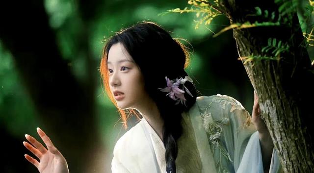 她站在一片竹林里,竹叶在微风中轻轻摇晃,发出沙沙的声音。