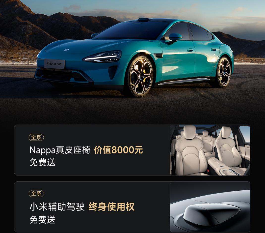 小米SU7的10月限时购车权益保持不变,依旧是Nappa真皮座椅和小米辅助驾驶终身免费使用权。