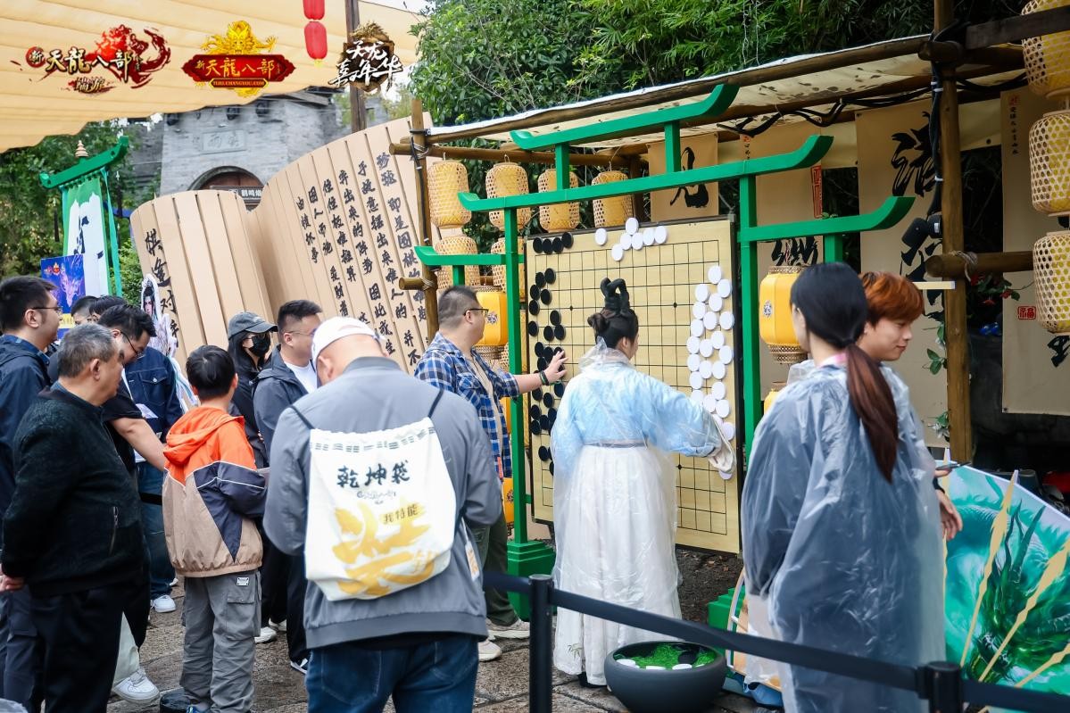 当coser们的游园队伍沿着园区小路,穿梭在满是古代氛围的建筑中,时不时路过道路两旁,有不同的门派在摊位上正“招兵买马”,一瞬间恍惚了,仿佛真的置身于我们多年所热爱的天龙武侠世界!
