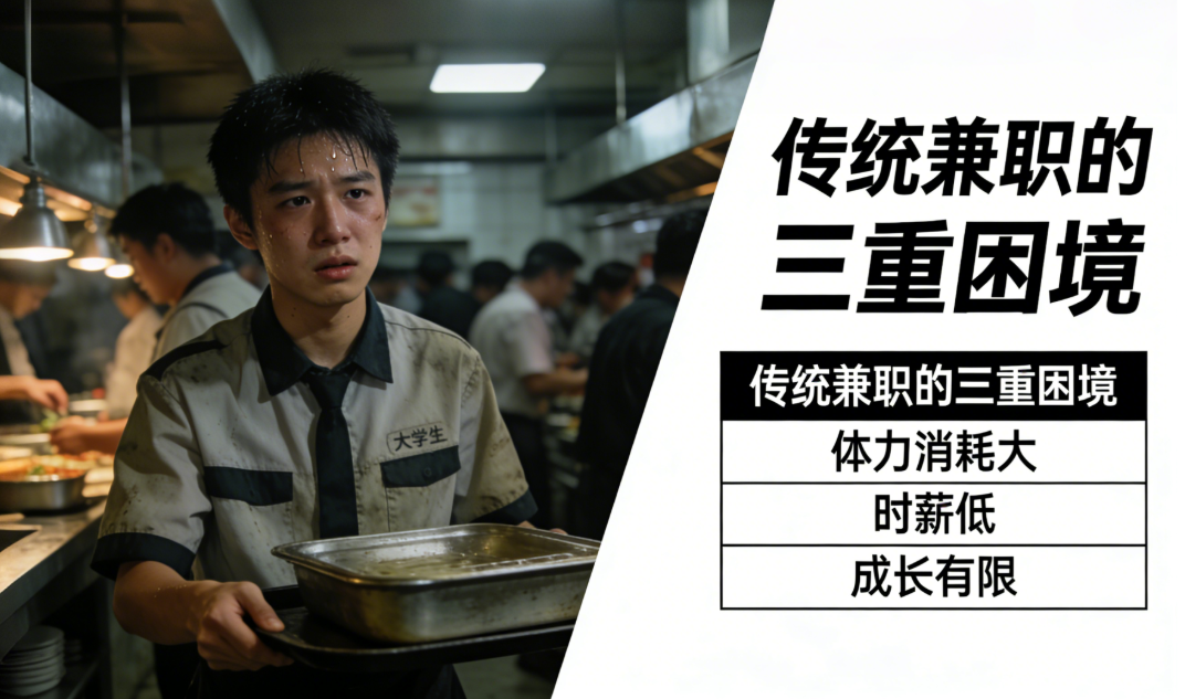 体力型(发传单、服务员、快递分拣等):优势是门槛低、日结为主;劣势是纯消耗性劳动,技能零增长,且占用大量完整的课余时间,极易与课业冲突。