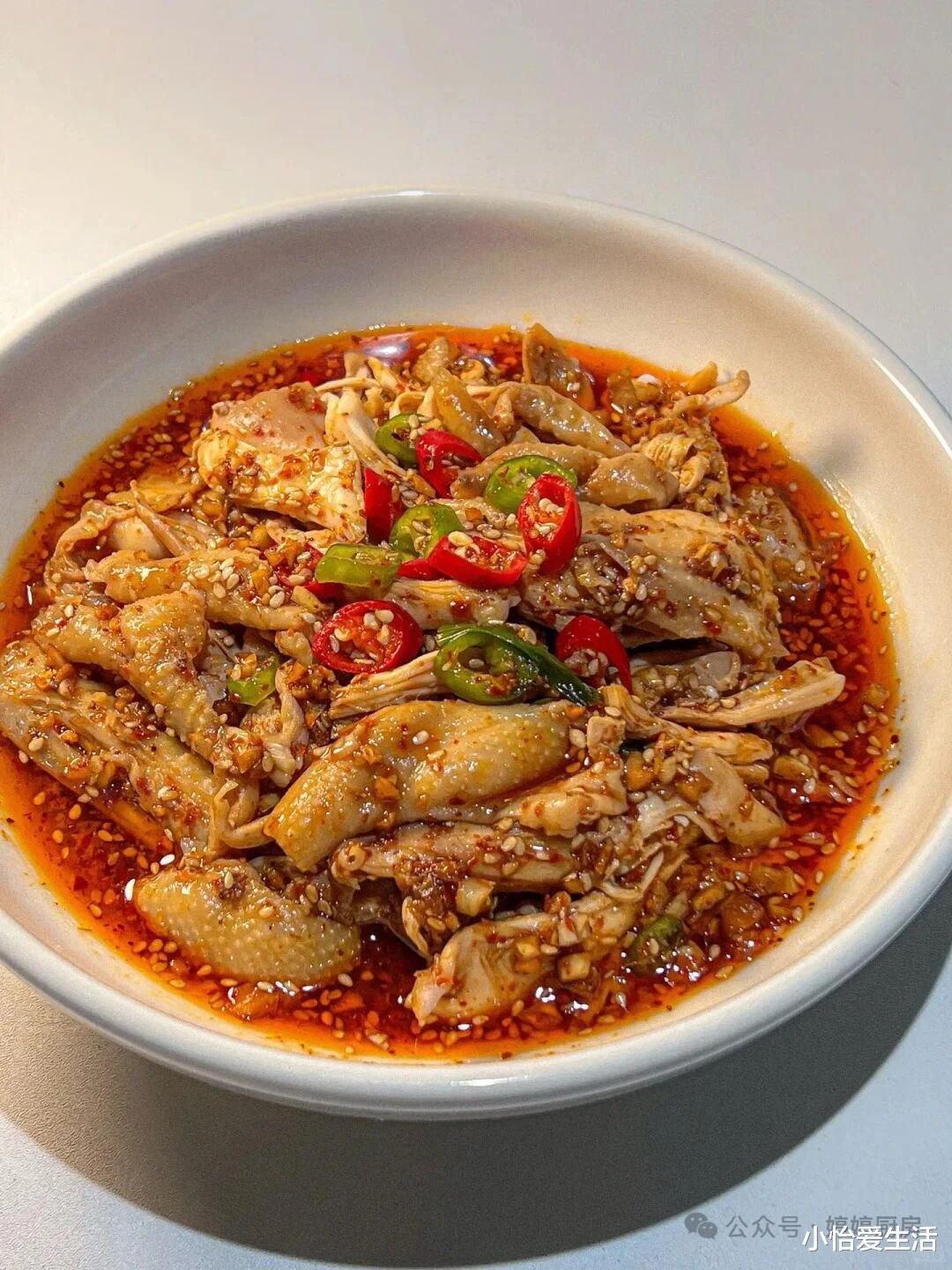 3. 调汁:红油、花椒油、蒜末、姜末、生抽、香醋、白糖、盐、鸡精、葱花、白芝麻混合。