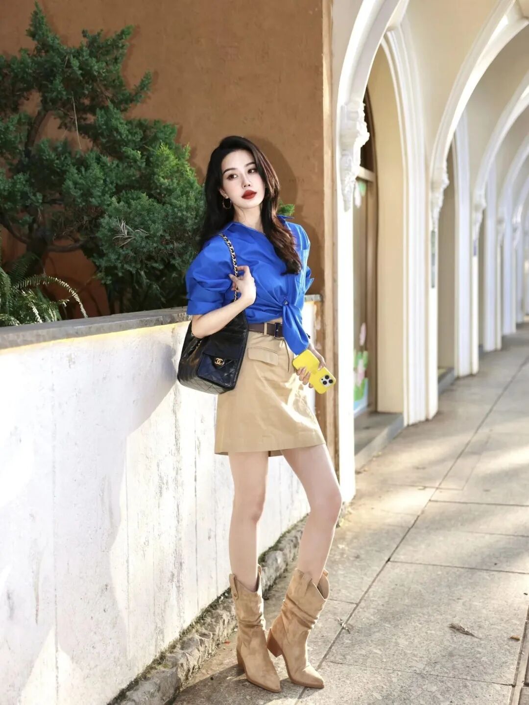 侧身站在路边,一只腿自然伸直,另一只腿微微弯曲,身体可以稍作扭转,一只手拿着小道具(比如手机),另一只手随意搭在身上或提着包包。这个姿势能很好地展现身体线条,让画面更具动感,还能利用侧身的角度,让阳光或背景的光影更好地衬托出人物,轻松营造出随性又时髦的氛围。