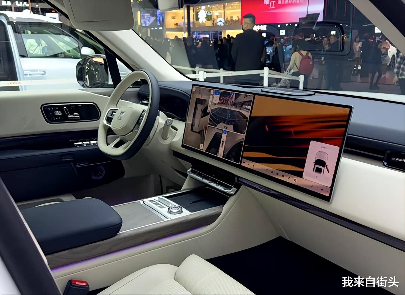 内饰拥有顶级奢华的配置,包括16寸3.5K OLED中控屏幕、47寸AR-HUD抬头显示器、Nappa零重力座椅、32具扬声器Naim音响系统、车载冰箱等。