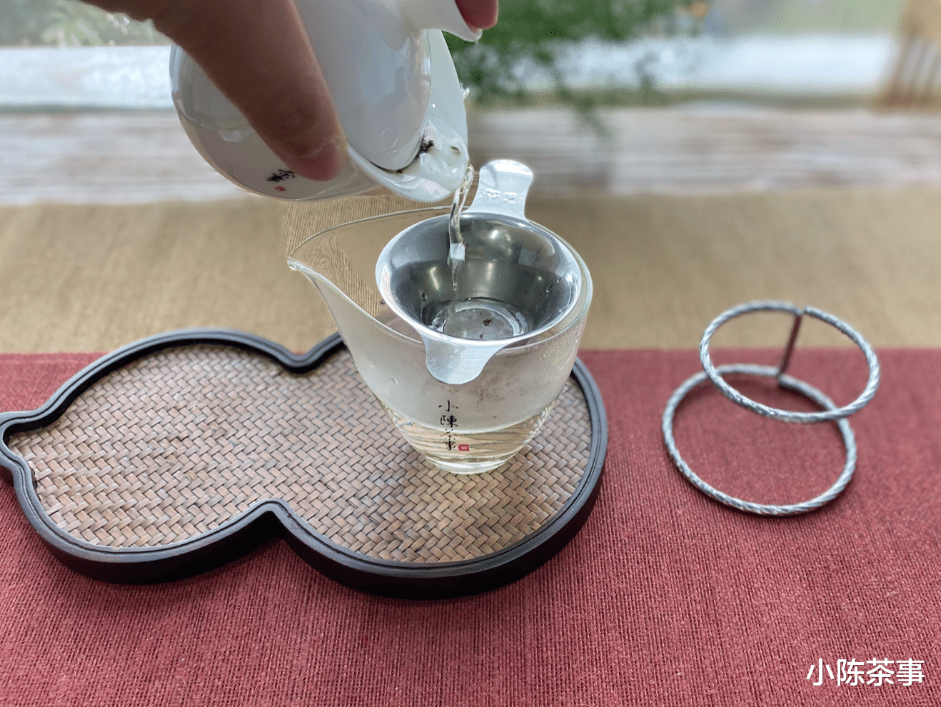 到了冲泡的时候,便容易有碎叶子与茶汤一同冲淋下来,冲到公道杯里。