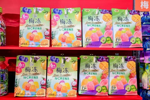 在众多新品中,蜂蜜柚子NFC梅冻与蓝莓奇异果NFC梅冻凭借“天然梅冻,水润多C”的鲜明卖点,迅速引爆市场。蜂蜜柚子NFC梅冻采用NFC鲜果生榨工艺,保留红西柚天然原浆,添加量不低于20%,富含天然维生素C,同时融入长白山椴树雪蜜,口感温润清甜,兼具补水与润燥功效,成为秋冬滋养的理想零食。蓝莓奇异果NFC梅冻同样依托NFC生榨技术,蓝莓原浆添加量≥20%,奇异果原浆添加量≥5%。蓝莓中的花青素有助锁水防燥,奇异果作为“维生素C之王”进一步强化滋润效果,双果协同带来“1+1>2”的润燥体验。