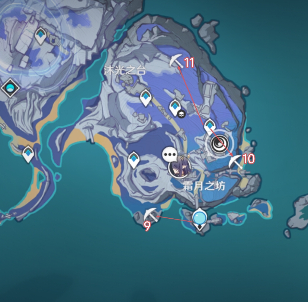 点位 8:机关激活后,从平台跳至二层走廊,走廊尽头的宝箱旁(需用冰元素击碎冰墙),拾取虹滴晶的同时可获得 “摩拉 ×5000”。