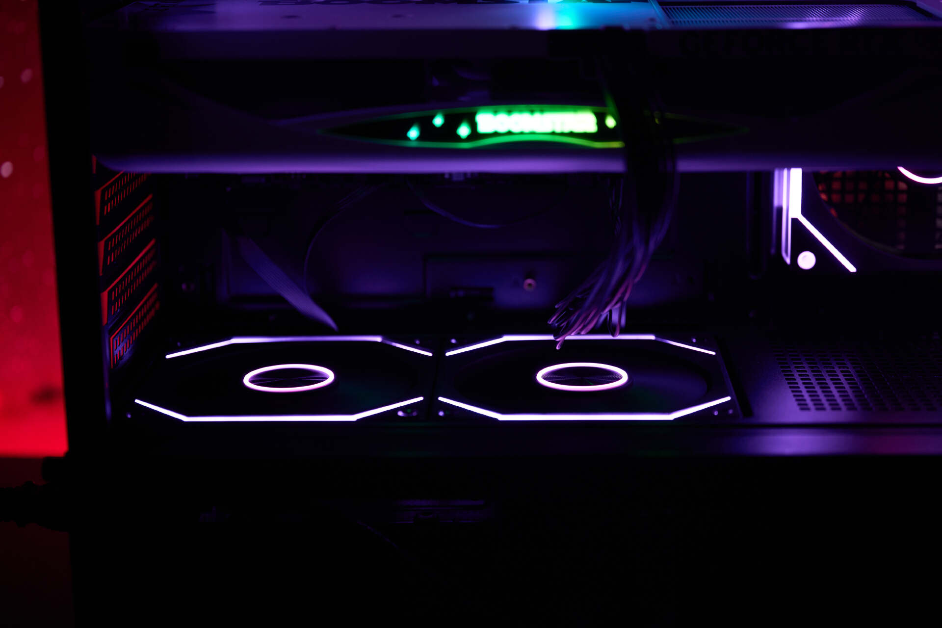 为增加整机散热与颜值,此次装机选用5把安耐美魔联 ARGB 积木风扇。该风扇可选正反向,此次安装了3正 2 反,分别是侧部,下部以及后部的风扇。