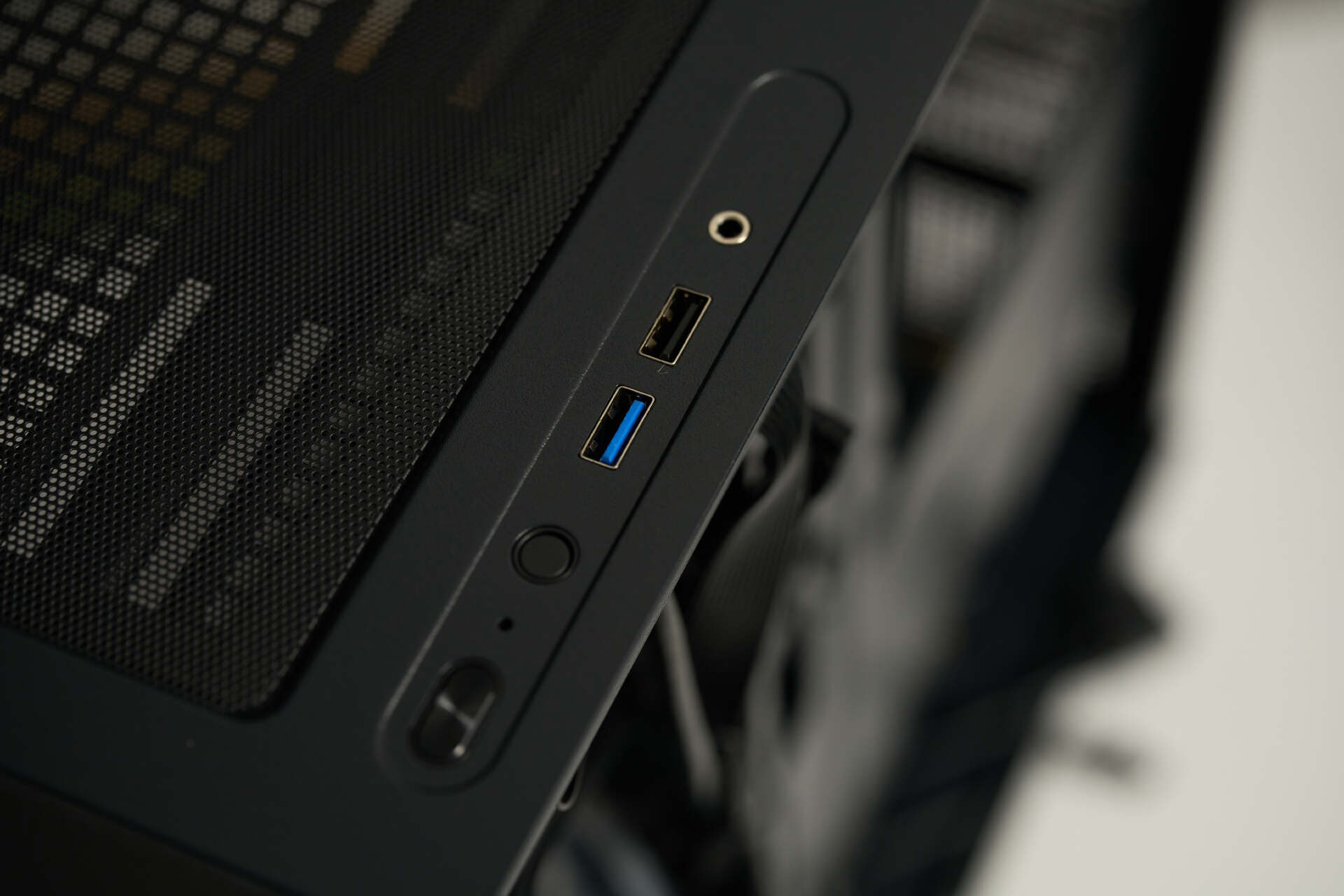 机箱IO接口基本都配齐了,开关,重启,音频,USB-A接口都有,但比较遗憾的是居然没有配备C口,开关键键程比较深,手感偏软,对于不喜欢按键太硬的人还是挺友好的。