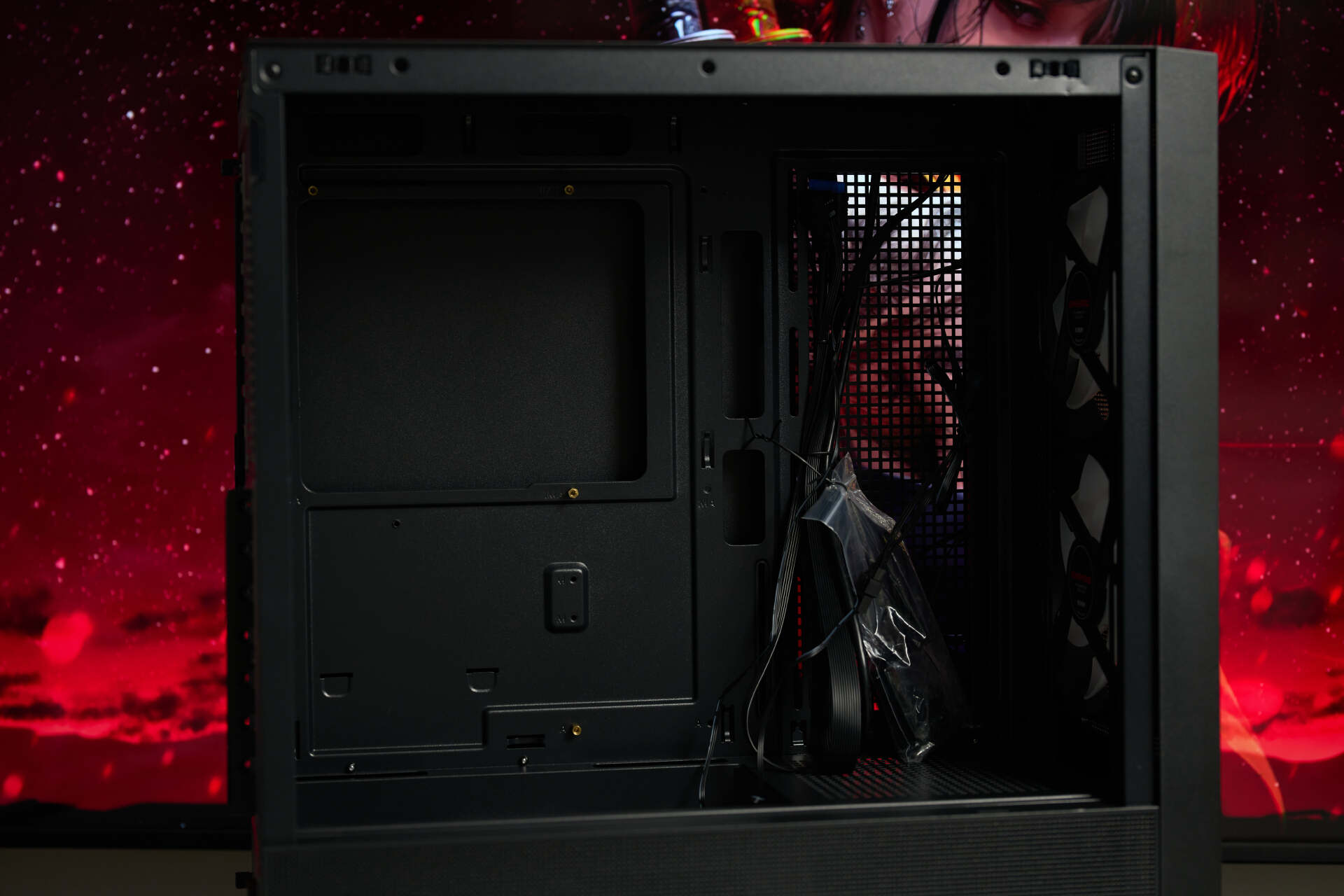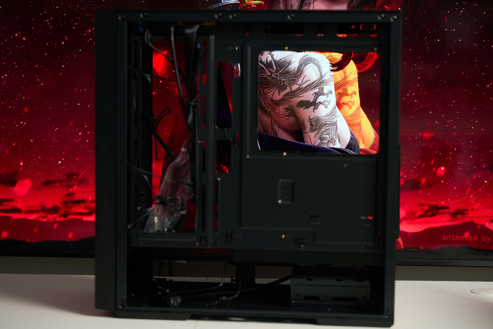 机箱背部理线空间充足,如果你和我一样不想多花时间理线,直接盖上侧板也是没什么问题的。